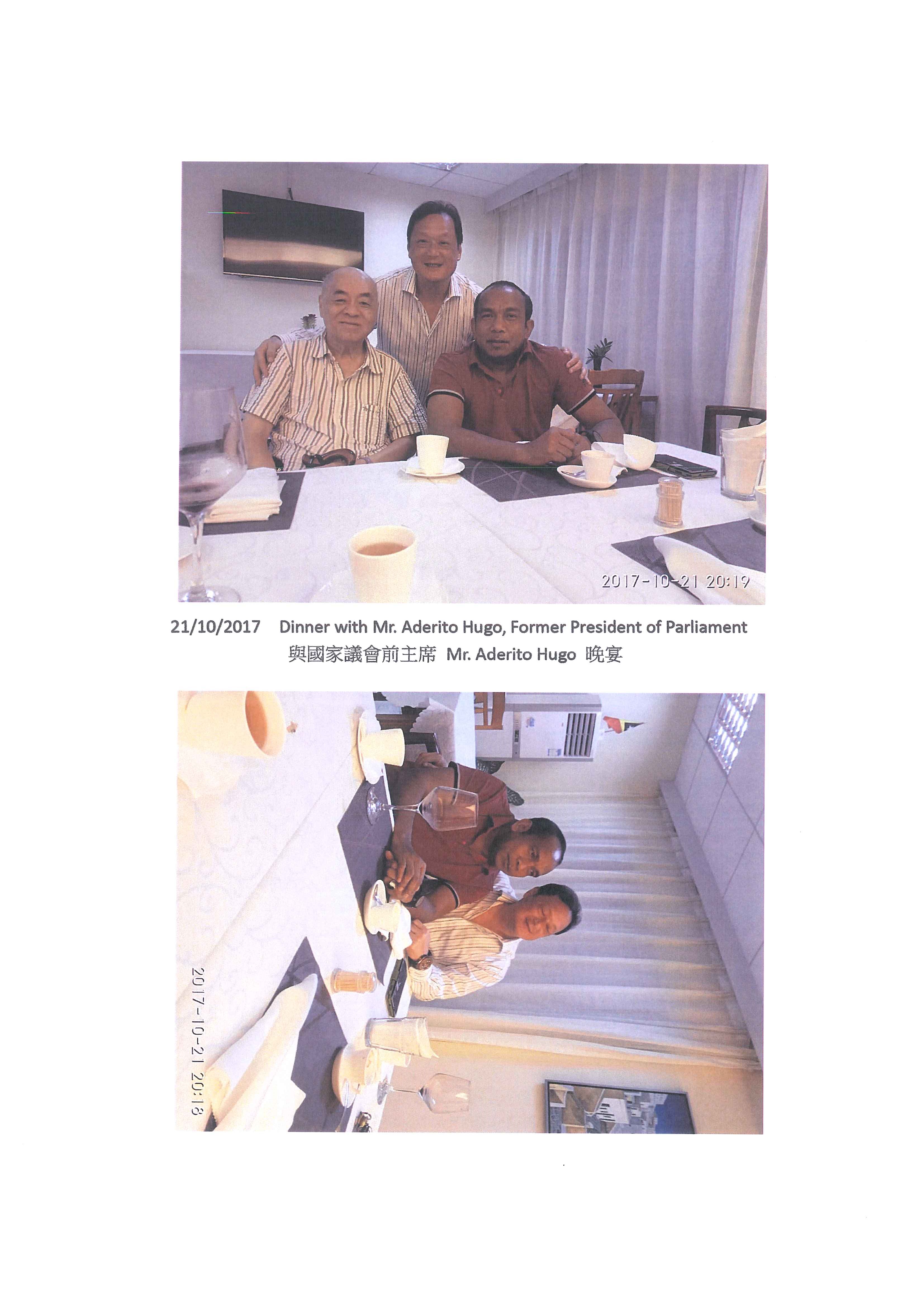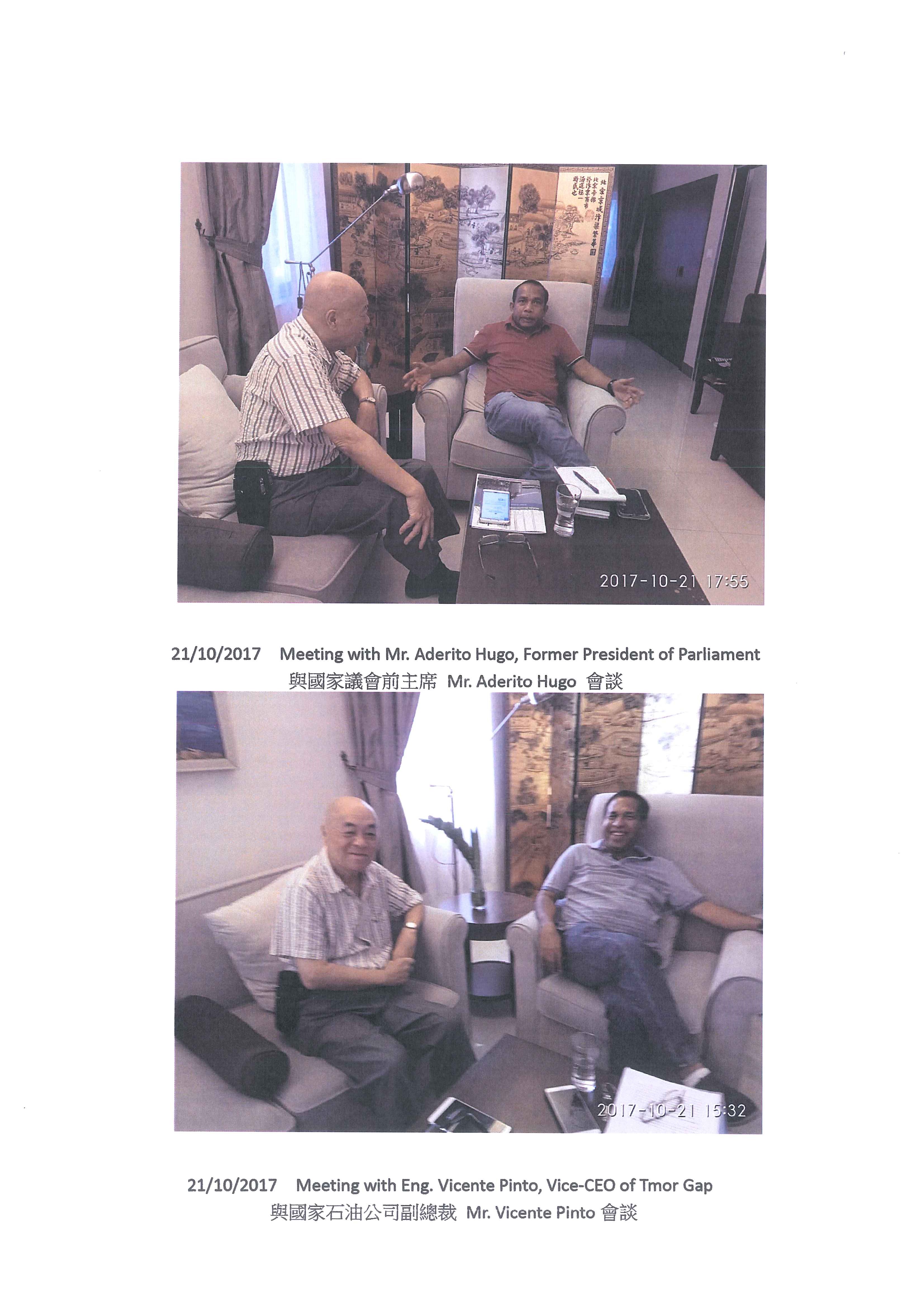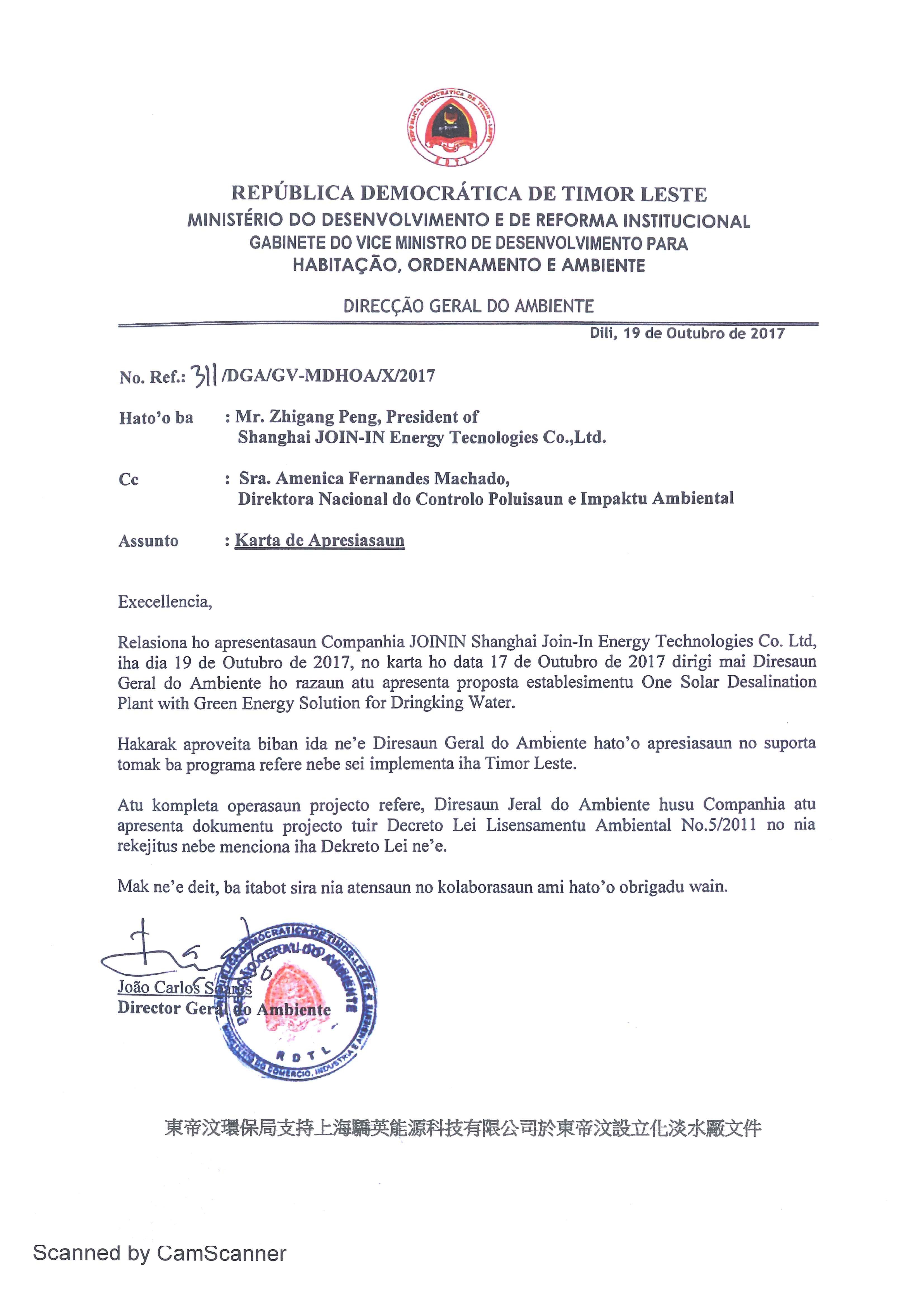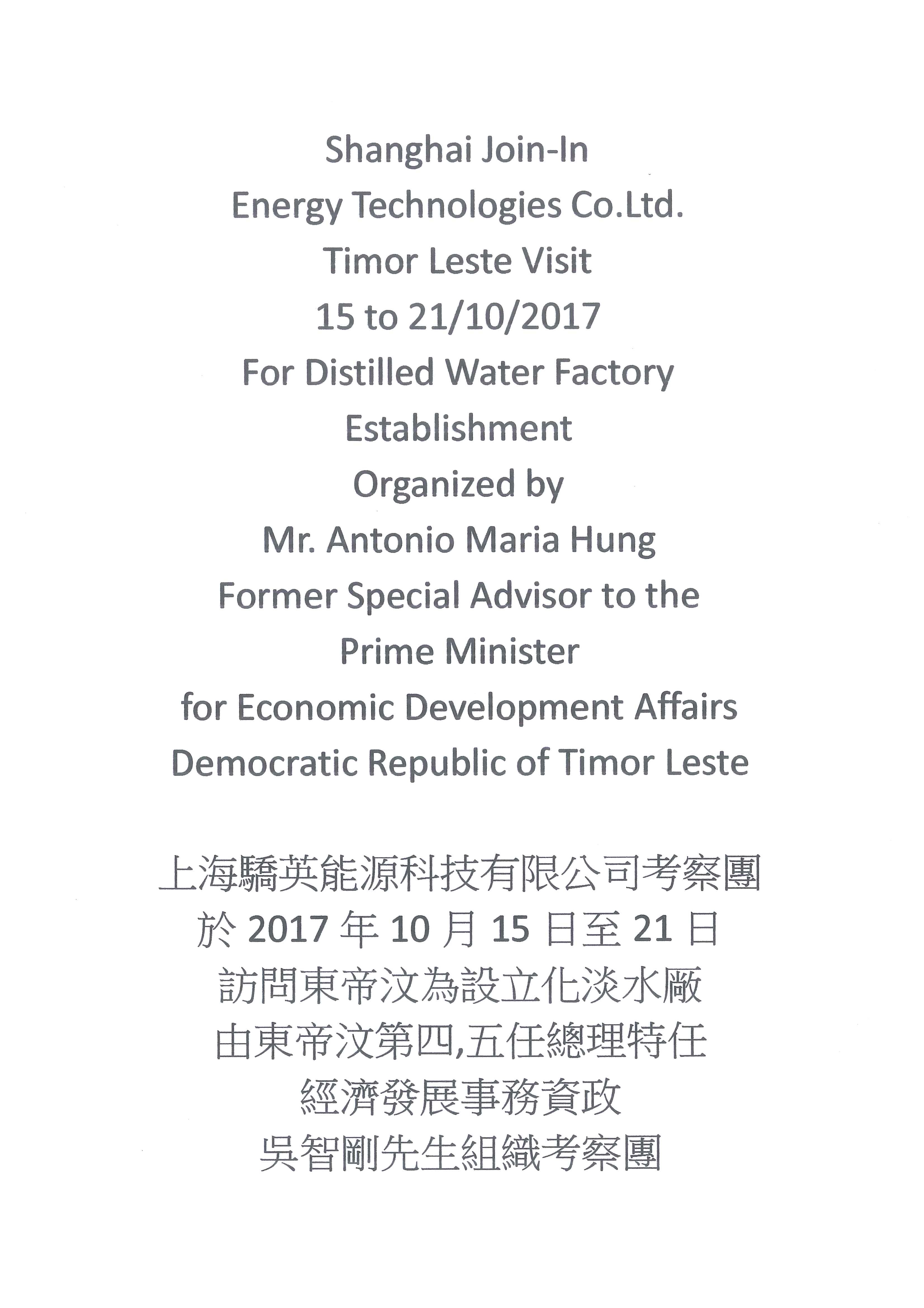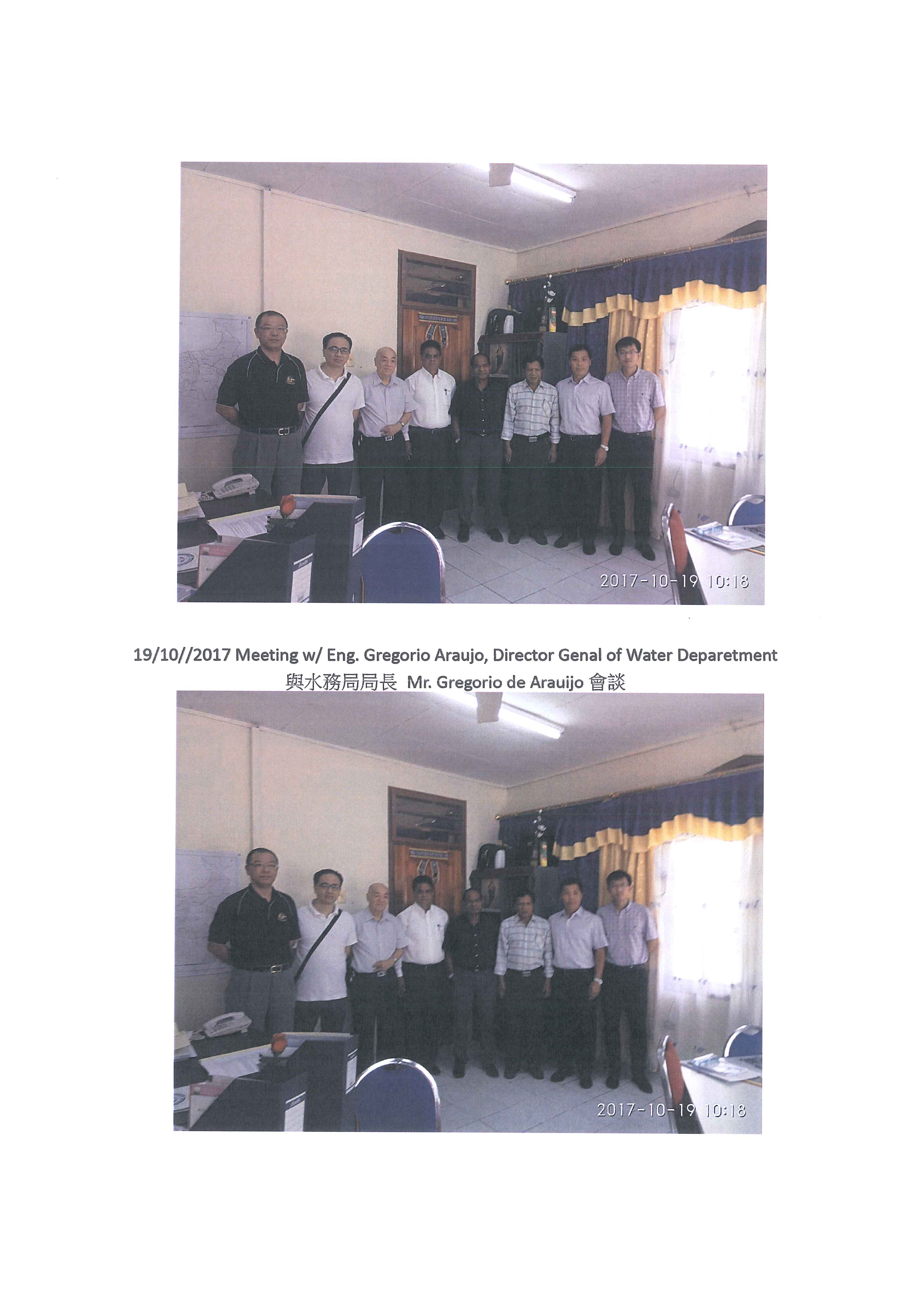於2017年10月15日至21日訪問東帝汶為設立化淡水廠