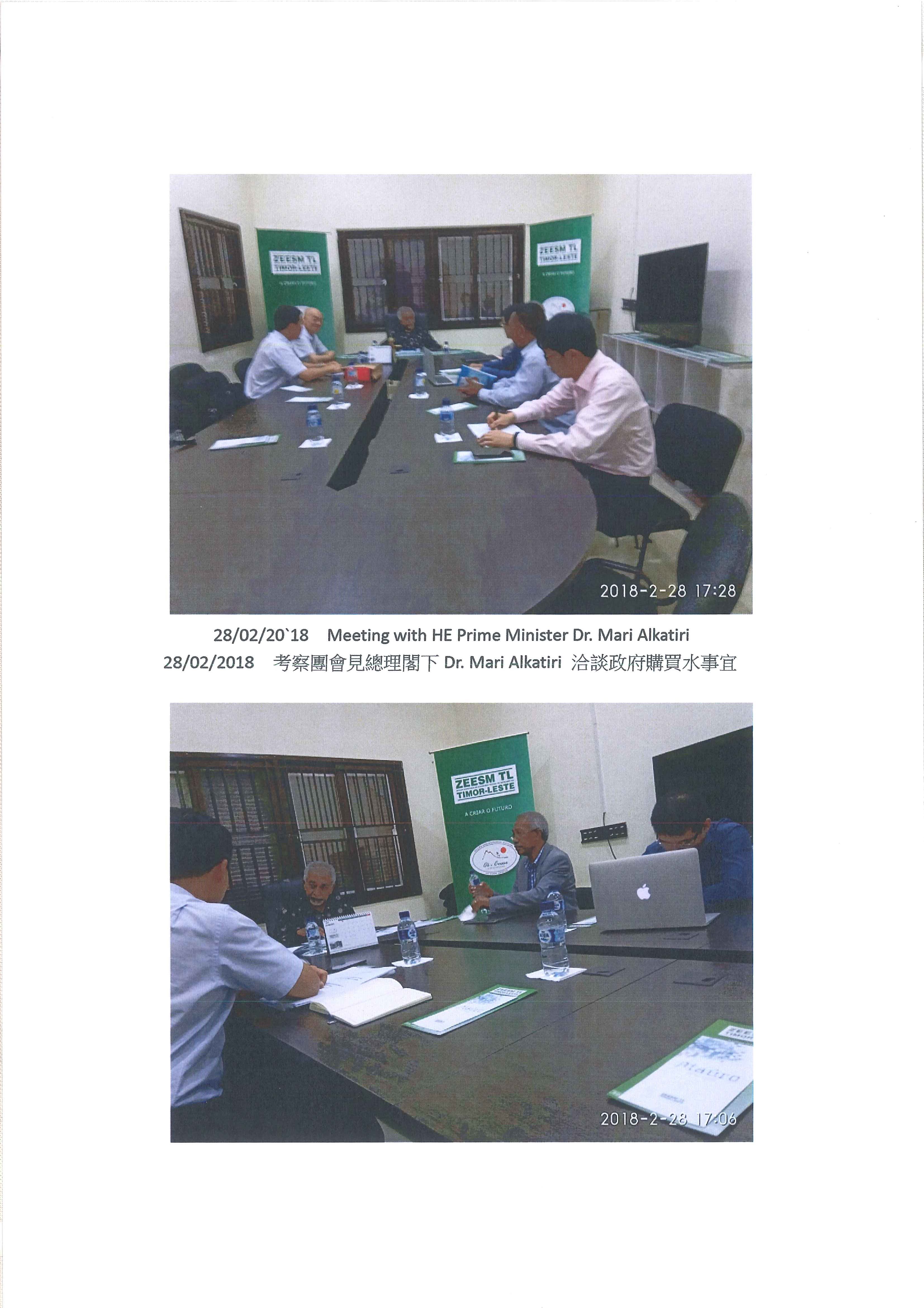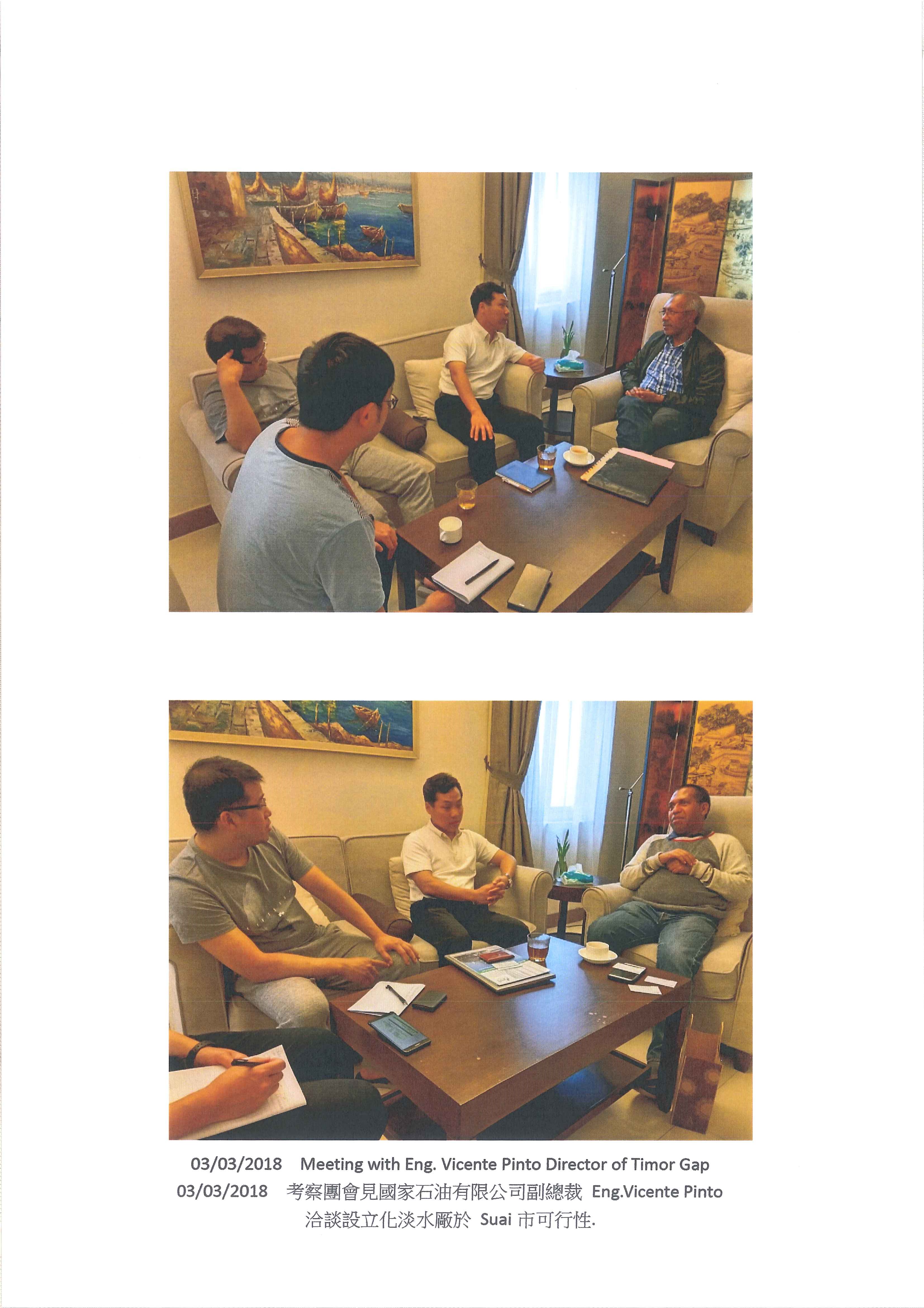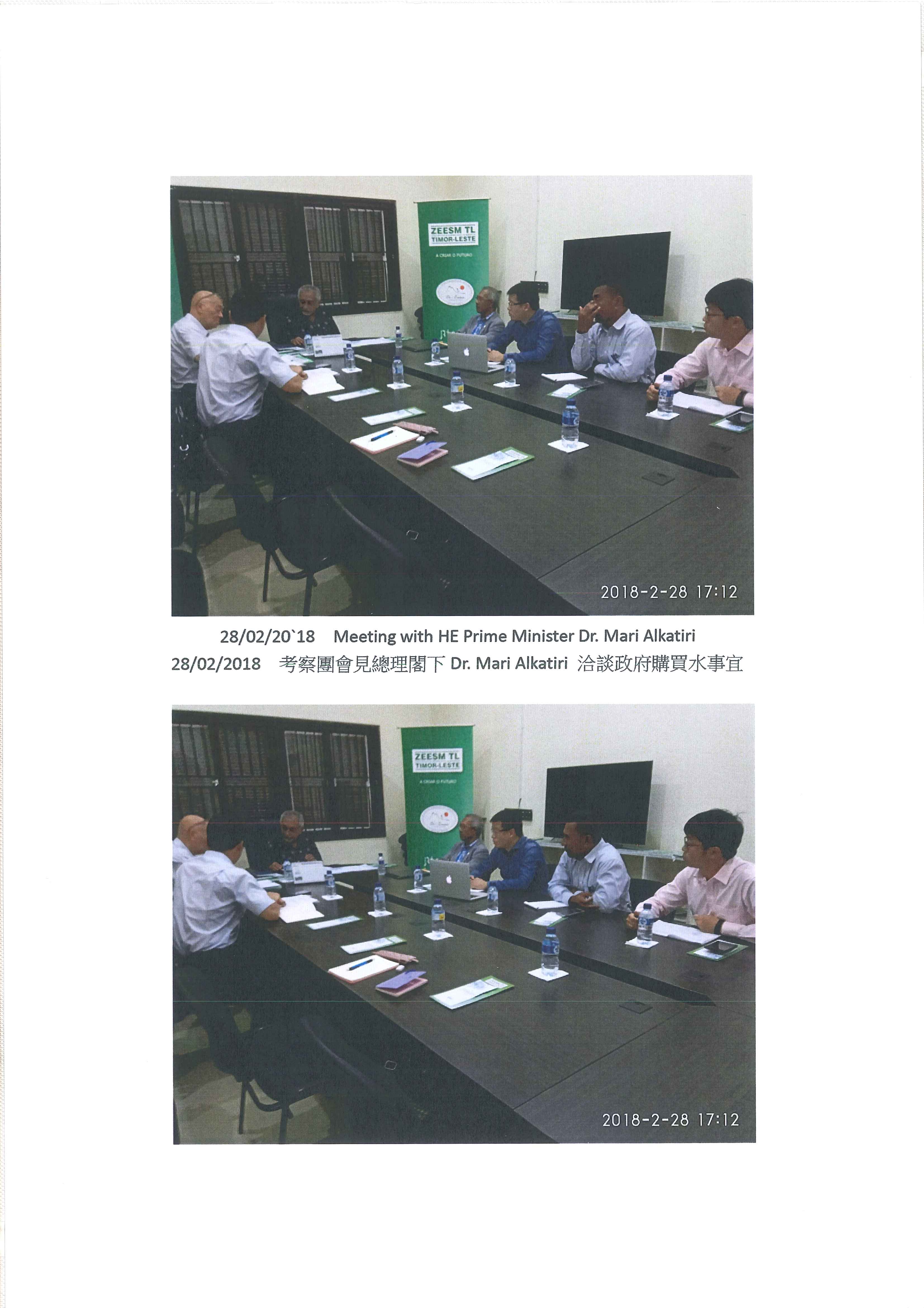 於2018年2月26日至3月6曰第四次訪問東帝汶 為設立化淡水廠及太陽能電站