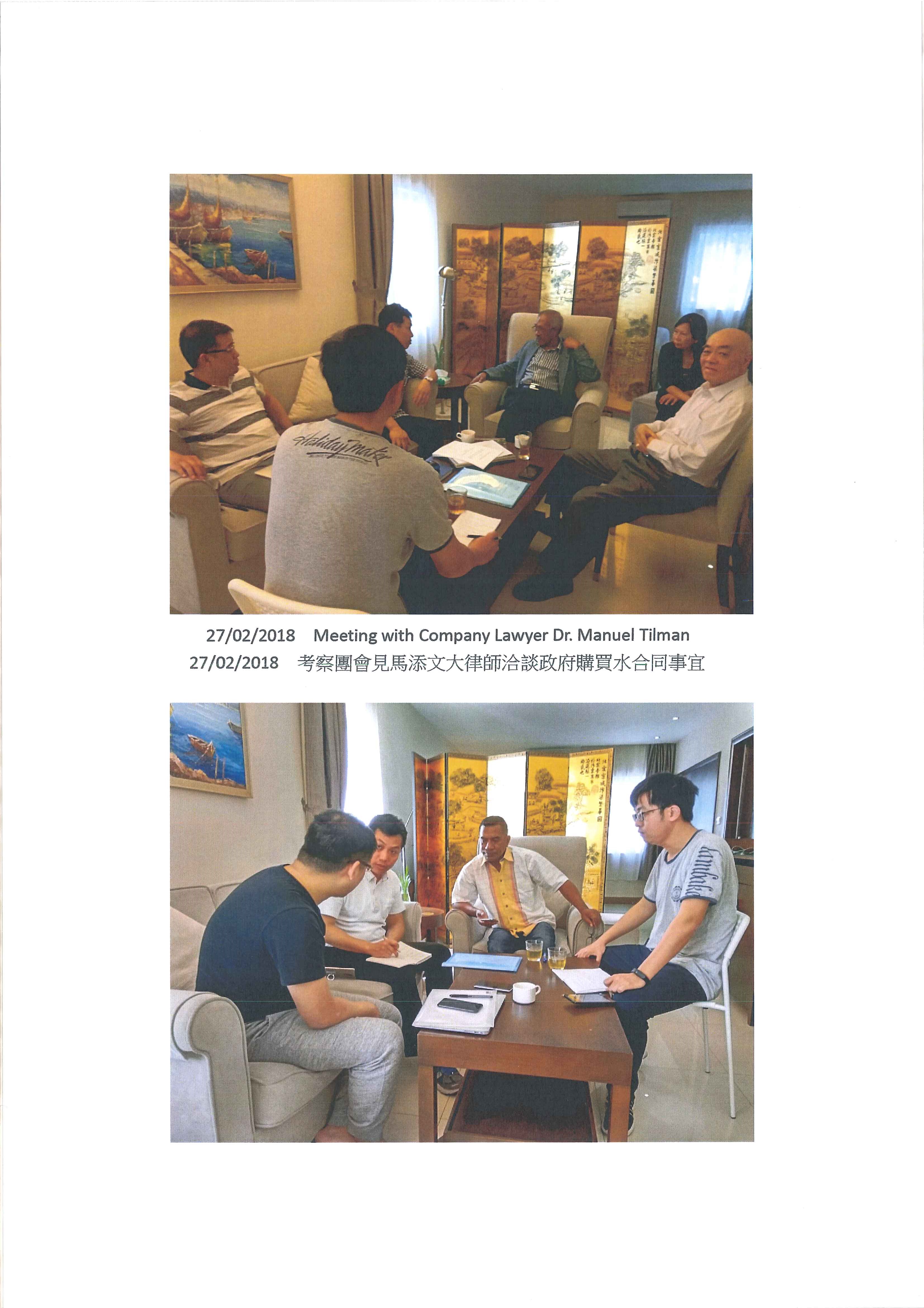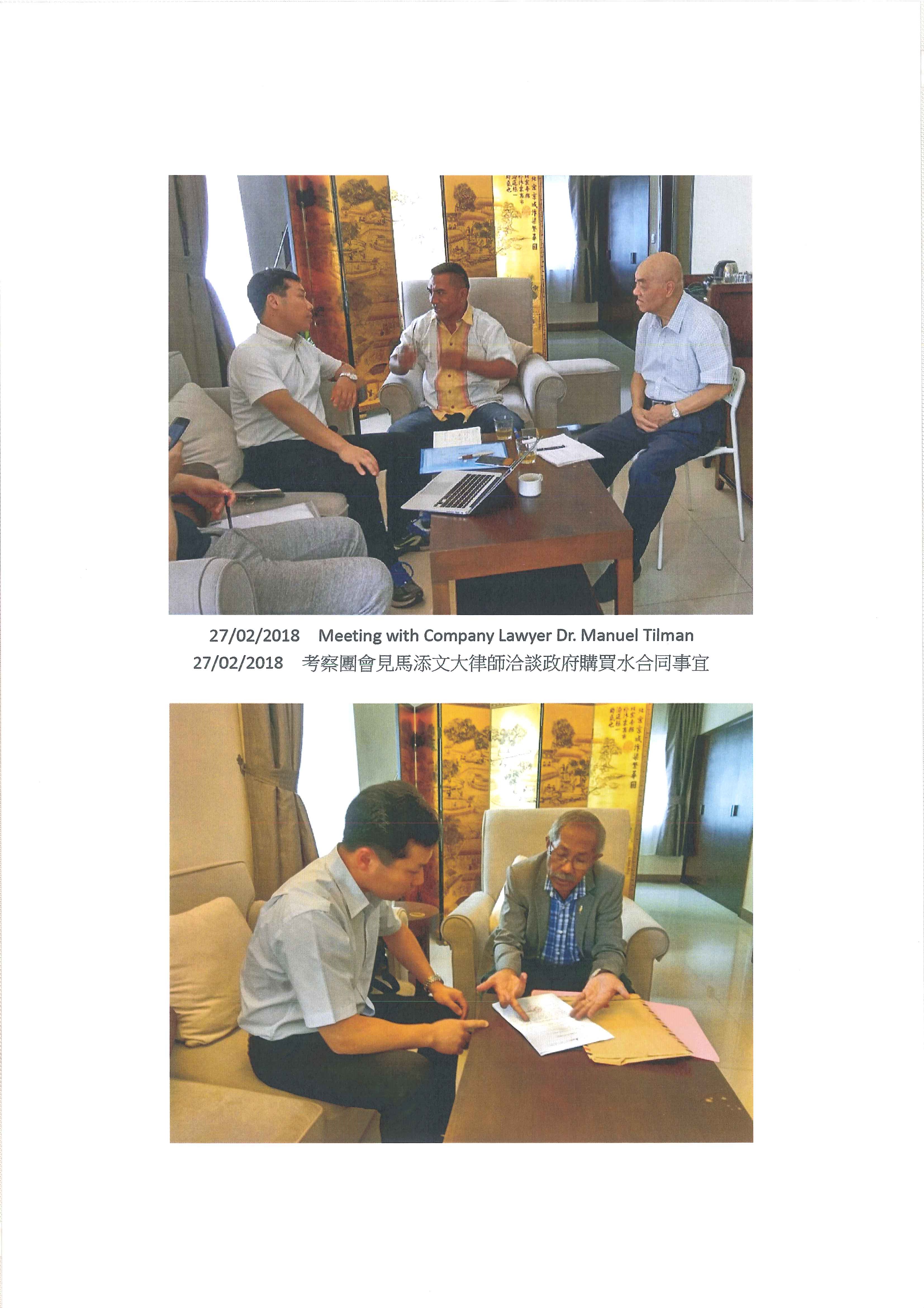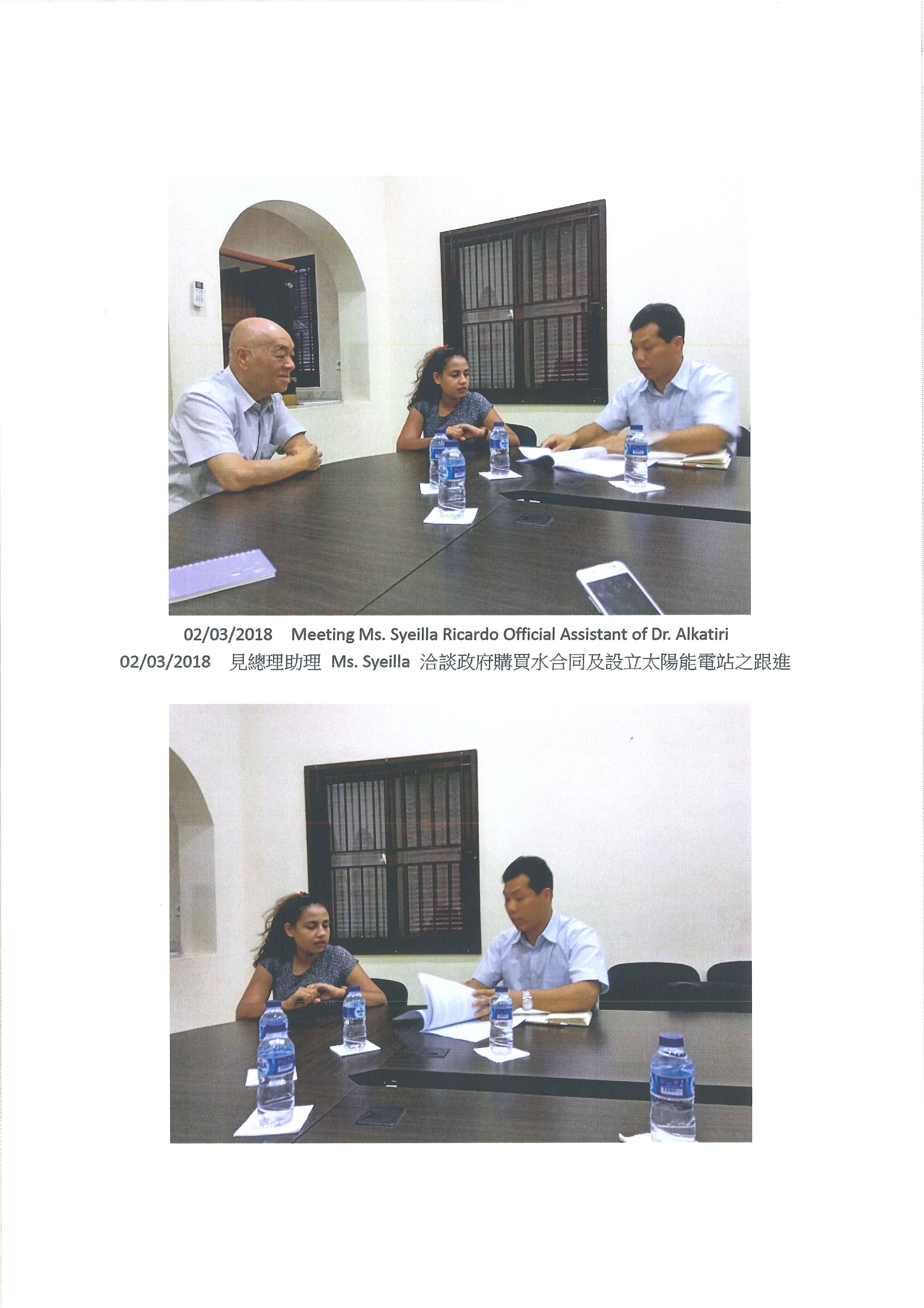 於2018年2月26日至3月6曰第四次訪問東帝汶 為設立化淡水廠及太陽能電站